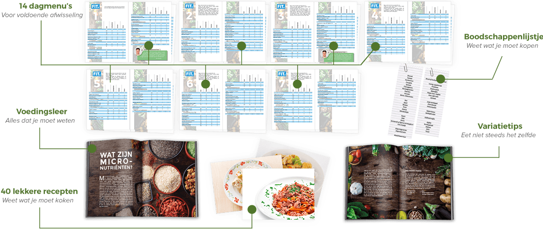 Elke dag van de week andere recepten. Met alle essentiële voedingsstoffen die jij nodig hebt voor resultaat.