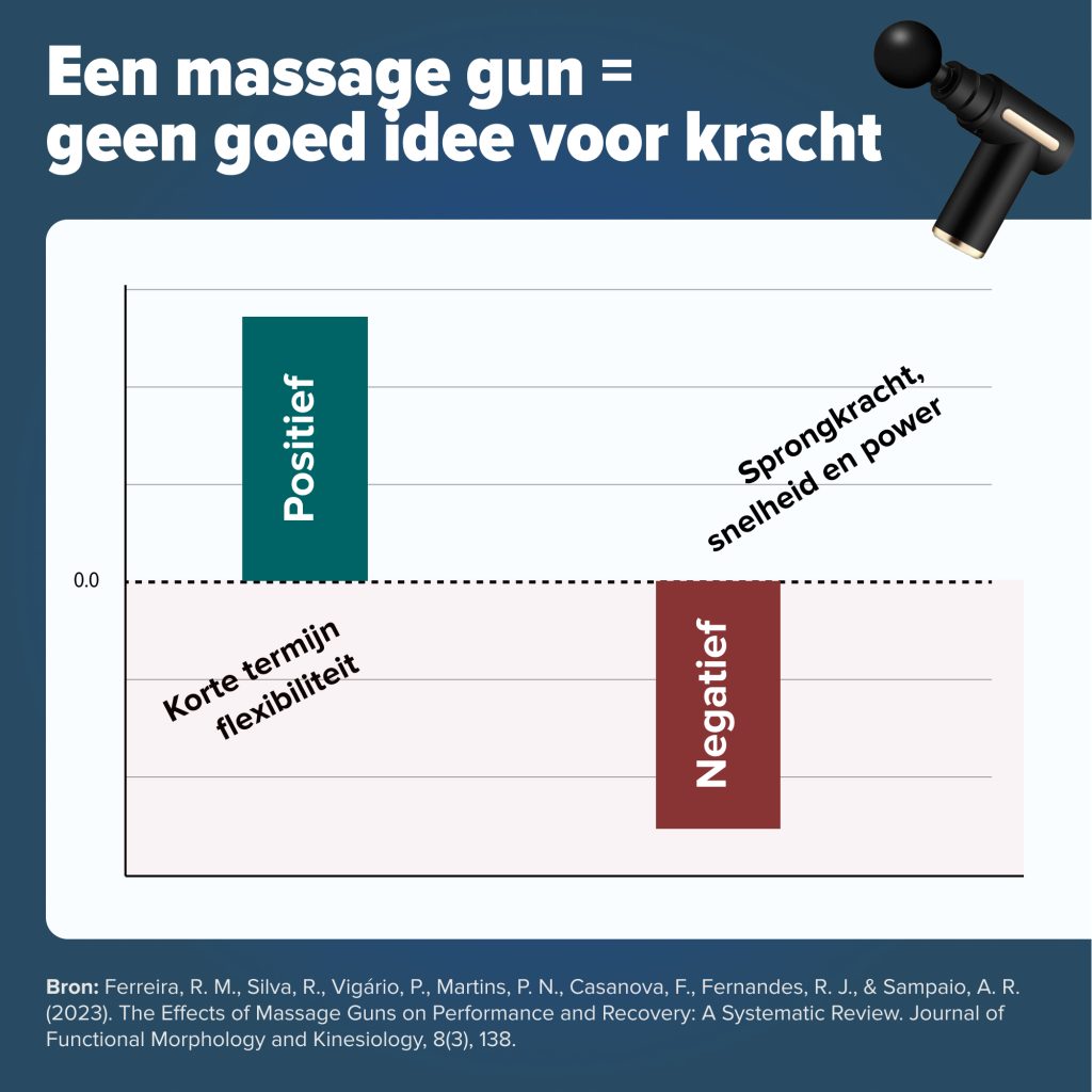 Hieruit kwam naar voren dat het gebruik van een massage gun bij sommige spieren zoals de kuit leidt tot een grotere range of motion bij lenigheidstesten. Bij de hamstring werd dit echter niet gevonden. Kortom, het is nog niet duidelijk in hoeverre een massage gun bij elke spier zorgt voor een grotere range of motion.